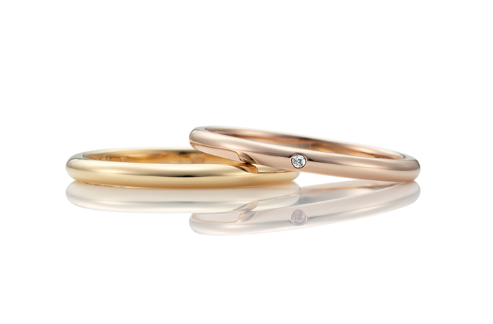 群馬県の伊勢崎市からお車でお越しのご夫婦。これぞ、シンプルイズ ザベストの美しい手作り結婚指輪の完成です。奥様はピンクゴールドの細めの手作り指輪にメレダイヤをオーストラリア留めで。旦那様はイエローゴールドの標準的な太さの手作り 結婚指輪にサンドブラスターを使ったツヤ消しマット仕上げで。シンプルですが、威風堂々としたオーラを感じる作品になりました。